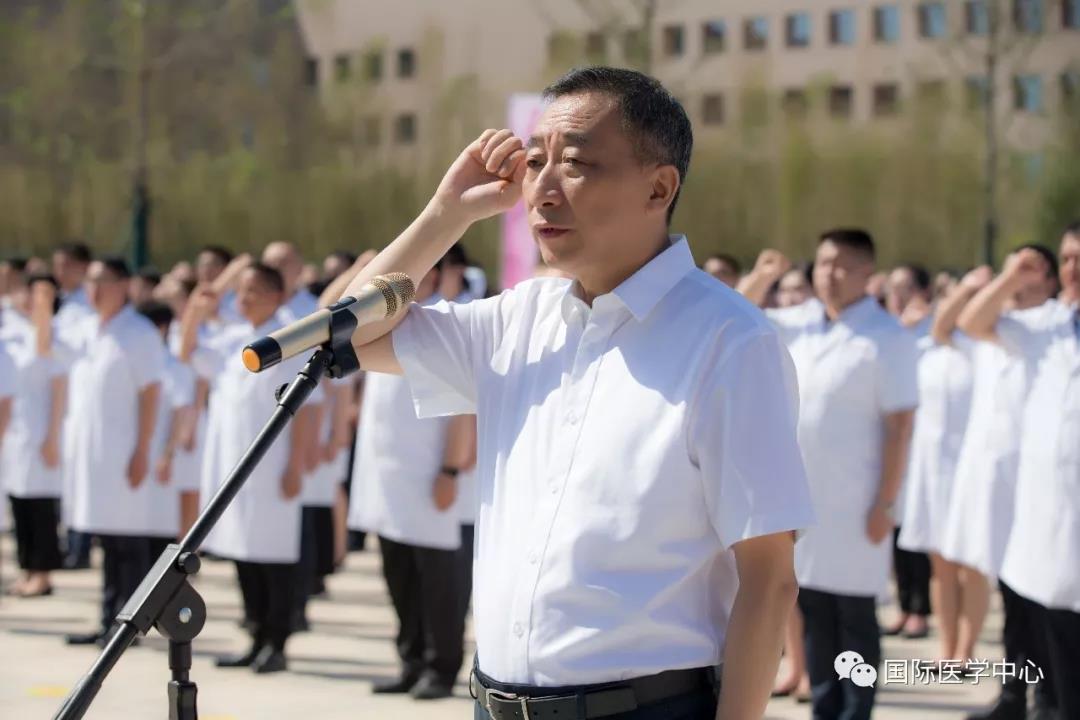 儀式開始,王志峰總經(jīng)理發(fā)表了熱情洋溢的致辭,歡迎來自五湖四海的各位醫(yī)療及醫(yī)療保障工作者們,并祝賀大家成為西安國際醫(yī)學中心的開拓者、創(chuàng)業(yè)者。他表示,經(jīng)過近一年的密集籌備、人員引進,我中心首批員工到崗,其中學科帶頭人和骨干來自全國知名三甲醫(yī)院,可謂人才濟濟,精英薈萃,具備揚帆遠航的實力。全體員工是西安國際醫(yī)學中心建設的基石、發(fā)展的核心動力。合格的國際醫(yī)學人,應該是以至善之心博愛天下,以服務社會積微致遠。秉承讓“患者有尊嚴的生活,醫(yī)者有尊嚴的工作”的價值觀,珍惜機遇,牢記誓言,不忘初心,砥礪前行。匯聚人類生命科學智慧,同步國際頂尖診療水平。為了一個共同的目標凝聚一起,共同“佑護無法衡量的價值”!
