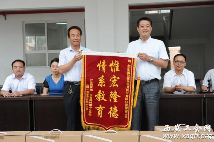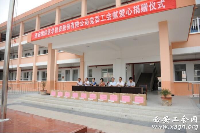 六一前夕,由西安市財貿(mào)工會、西安市教科文衛(wèi)工會和西安國際醫(yī)學(xué)投資股份有限公司聯(lián)合發(fā)起的“真情牽手、愛心助學(xué)”捐贈活動在戶縣蔣村鎮(zhèn)甘西小學(xué)進(jìn)行。