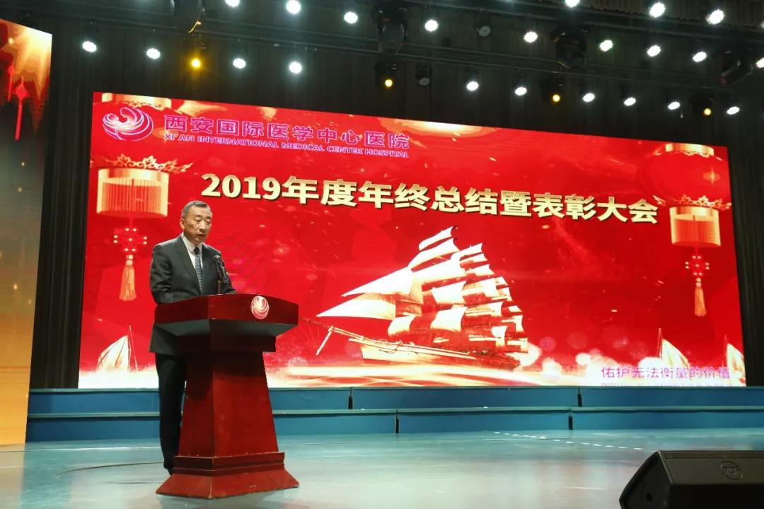 凱歌高奏辭舊歲,春風(fēng)得意迎新年。12月27日,西安國際醫(yī)學(xué)中心醫(yī)院2019年度年終總結(jié)暨表彰大會在吉源國際酒店舉行。國際醫(yī)學(xué)副總裁孫文國、西安國際醫(yī)學(xué)中心醫(yī)院院長尹強(qiáng)、財(cái)務(wù)總監(jiān)權(quán)穩(wěn)延、副院長楊峰、副院長李武平以及各??漆t(yī)院、各科室領(lǐng)導(dǎo)等出席。大會由西安國際醫(yī)學(xué)中心醫(yī)院總經(jīng)理王志峰主持。1000余名員工齊聚一堂,總結(jié)回顧2019,共話奮斗歷程,共享成功喜悅,共繪發(fā)展藍(lán)圖。