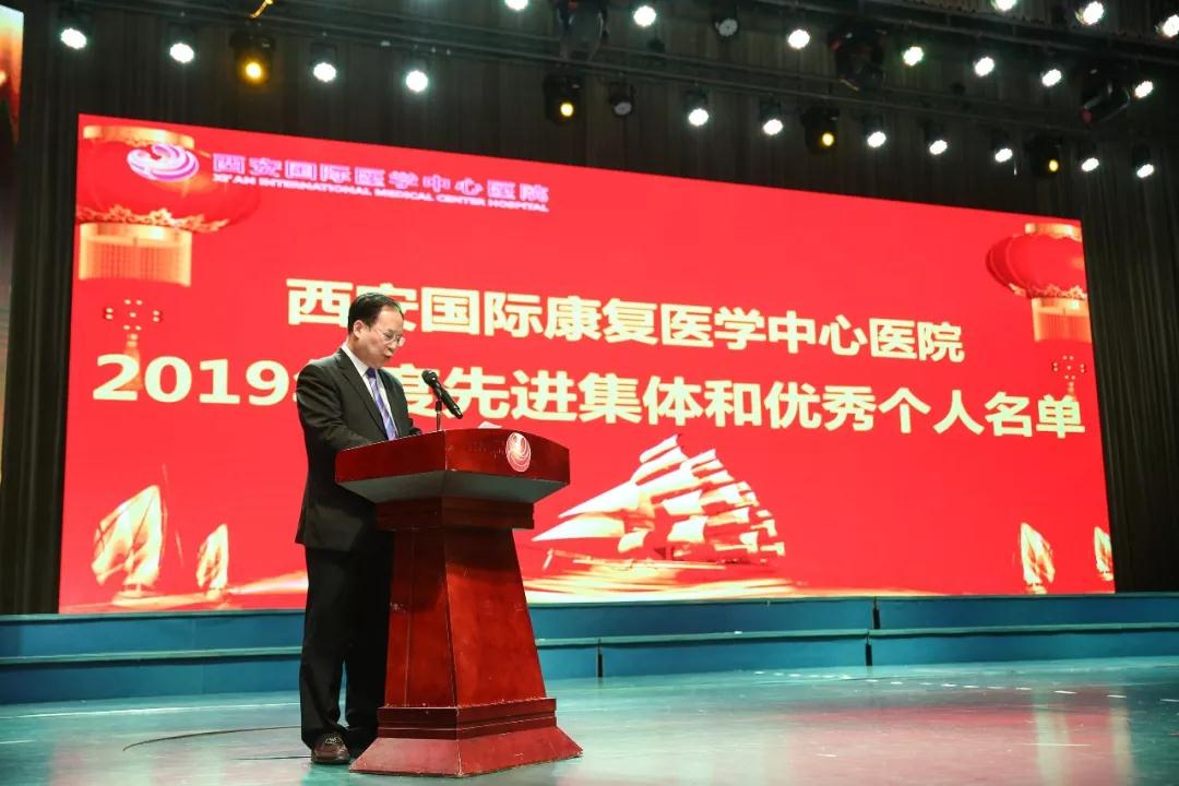 為鼓勵(lì)先進(jìn)、激發(fā)活力,骨科醫(yī)院院長賀西京宣讀了西安國際康復(fù)醫(yī)學(xué)中心醫(yī)院2019年度先進(jìn)集體和優(yōu)秀個(gè)人名單;李武平副院長宣讀了西安國際醫(yī)學(xué)中心醫(yī)院2019年度先進(jìn)集體和優(yōu)秀個(gè)人名單。集團(tuán)領(lǐng)導(dǎo)、醫(yī)院領(lǐng)導(dǎo)分別為先進(jìn)科室、先進(jìn)部門、優(yōu)秀科室主任、優(yōu)秀護(hù)士長、優(yōu)秀部門主任、優(yōu)秀員工等代表頒獎(jiǎng),并鼓勵(lì)先進(jìn)集體和優(yōu)秀個(gè)人繼續(xù)保持拼搏進(jìn)取、奮發(fā)有為的工作作風(fēng),為實(shí)現(xiàn)醫(yī)院的科學(xué)、有序、和諧發(fā)展貢獻(xiàn)自己的智慧和力量。