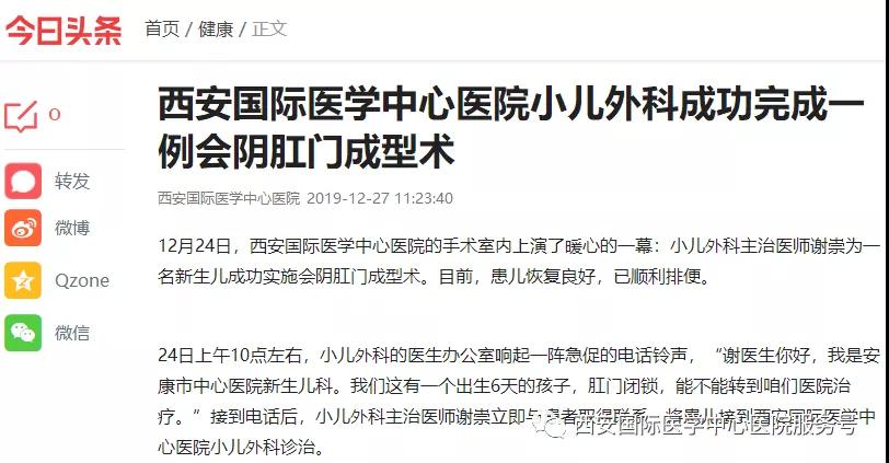 12月24日,西安國際醫(yī)學中心醫(yī)院的手術(shù)室內(nèi)上演了暖心的一幕:小兒外科主治醫(yī)師謝崇為一名新生兒成功實施會陰肛門成型術(shù)。目前,患兒恢復(fù)良好,已順利排便。