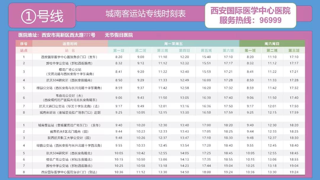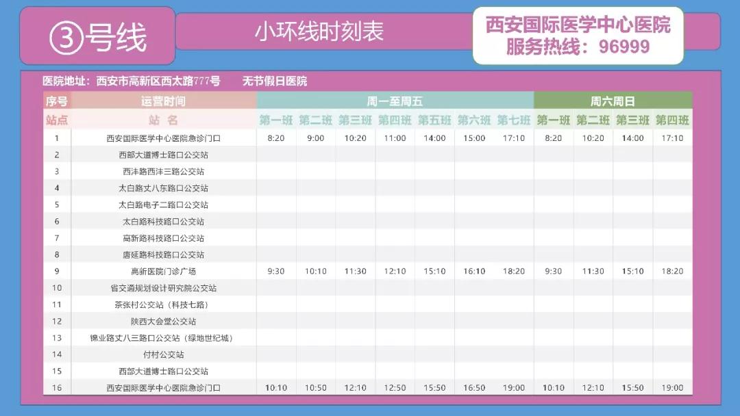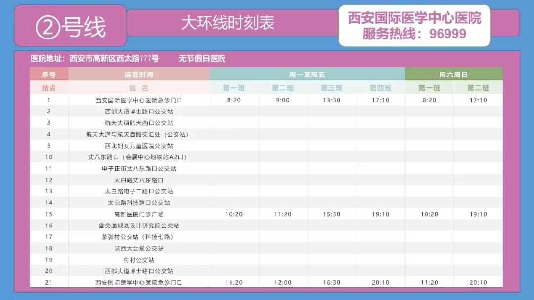 備注:西安國際醫(yī)學(xué)中心醫(yī)院——高新醫(yī)院運行時間為:周一至周五。