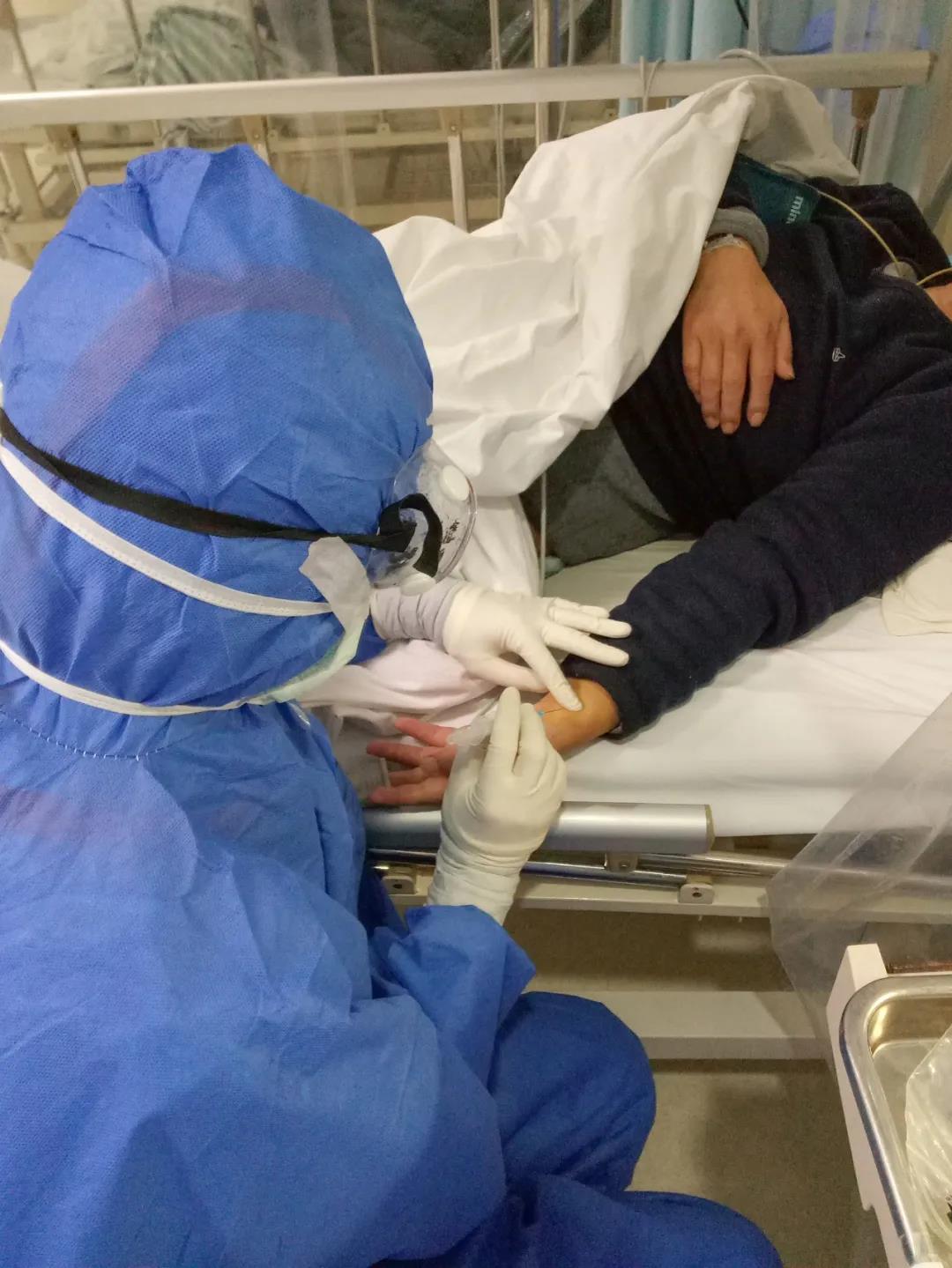 病區(qū)當(dāng)天收治了36位重癥患者,雖然早有準(zhǔn)備,但現(xiàn)實(shí)比張波想象的復(fù)雜。N95口罩和外科口罩、帽子、防護(hù)服、手套、長(zhǎng)靴套、隔離衣、眼罩……層層防護(hù)服下,張波的視覺(jué)、聽(tīng)覺(jué)、觸覺(jué)都受到影響。視線受限于起霧的護(hù)目鏡,寬大厚實(shí)的手掌戴了好幾層手套,原本動(dòng)脈采血、靜脈采血、留置針穿刺、輸液以及生命體征測(cè)量等熟悉的基本治療,操作起來(lái)異常艱難。