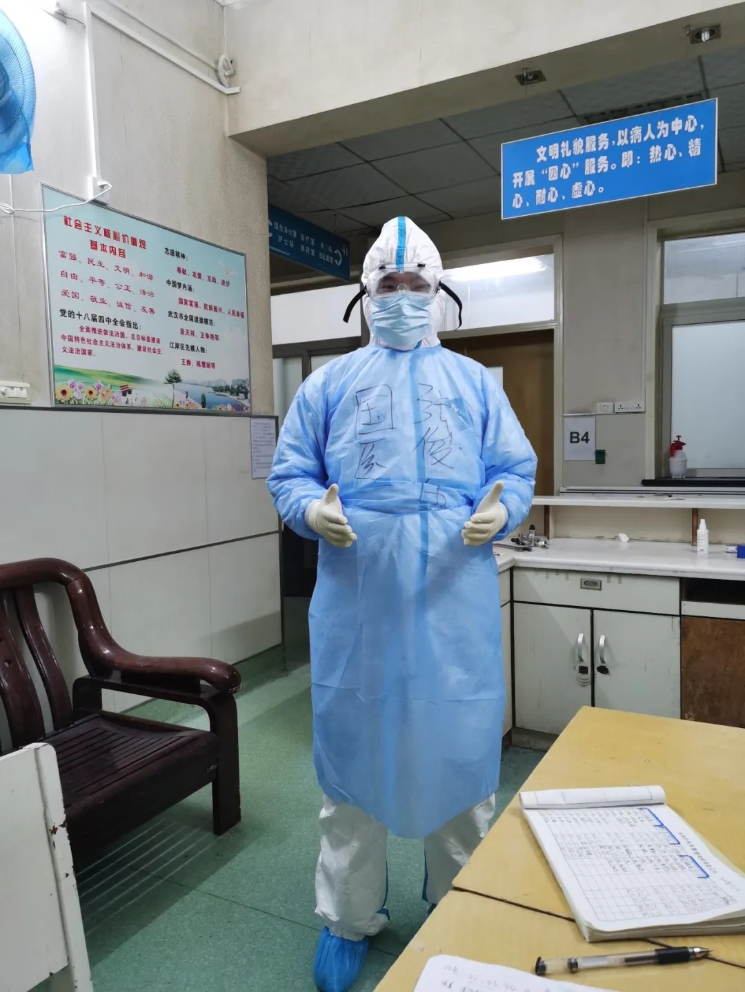 我們小組的隊(duì)員大多是八零后,在感控科劉冰主任的帶領(lǐng)下,對(duì)每一位醫(yī)療隊(duì)員,在上崗前進(jìn)行了嚴(yán)格的考核,不合格不準(zhǔn)上崗,保證每一個(gè)人都能正確的掌握穿脫防護(hù)服。劉冰主任時(shí)常對(duì)我們說:“醫(yī)生救治患者,就讓我們來守護(hù)他們吧!”作為八零后的一名醫(yī)療隊(duì)員,我相信,勝利一定屬于我們。