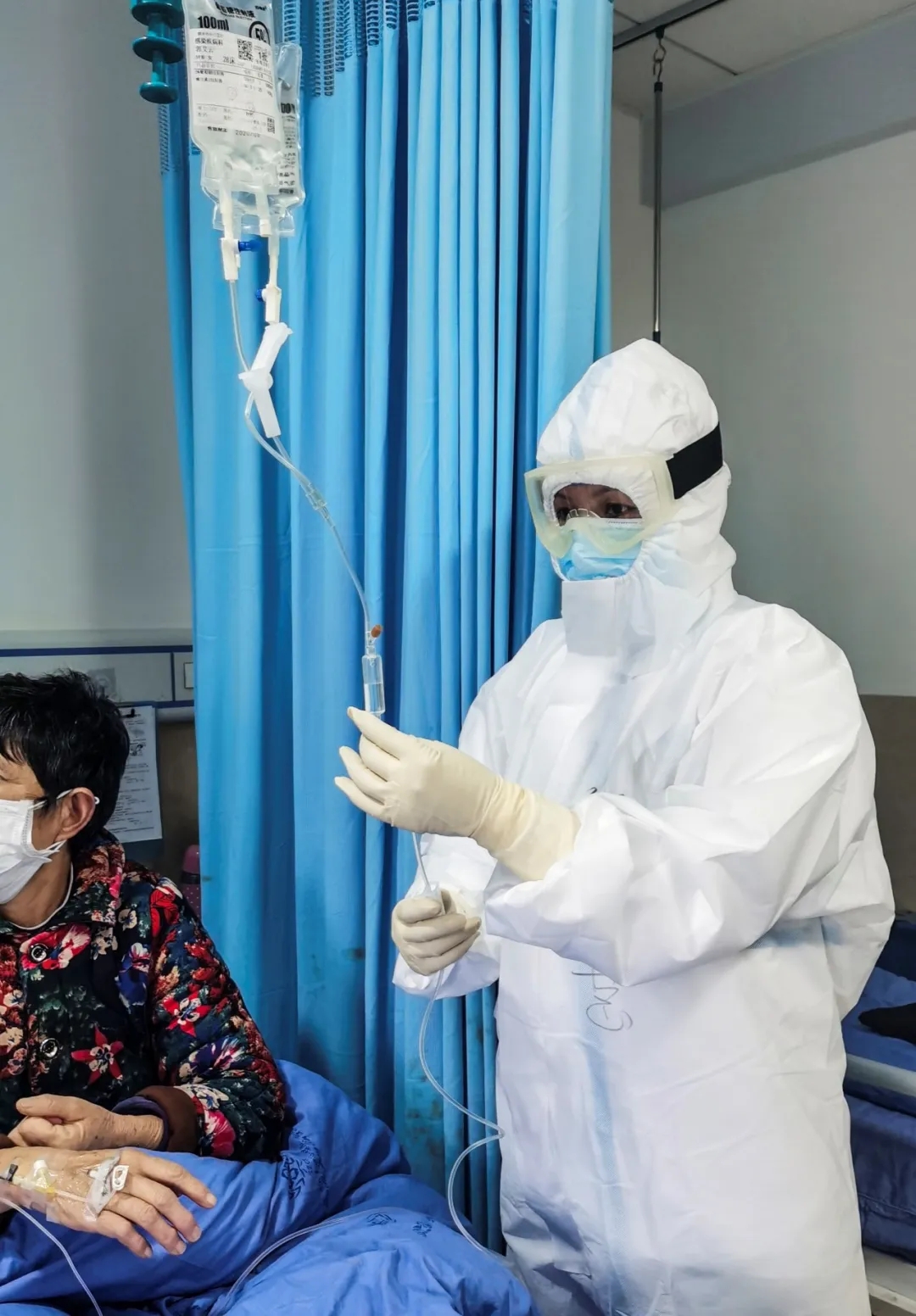 一位老人的家人在外地被隔離治療,身邊沒人照顧,需要生活用品。倪曉慧得知后,立刻帶了一些食物和紙巾等,送到老人手上:“我們的醫(yī)生護士就是您的親人,您有什么需要就和我們的護士小姑娘說!”老人留下了感動的淚水。