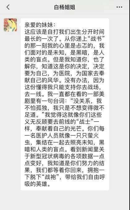 陽光總在風(fēng)雨后,我們大家都堅(jiān)定信心,有祖國做我們的強(qiáng)大后盾,有全國醫(yī)護(hù)人員的齊心協(xié)力、同舟共濟(jì),相信我們一定能打贏這場戰(zhàn)役,春暖花開之日我們再見!