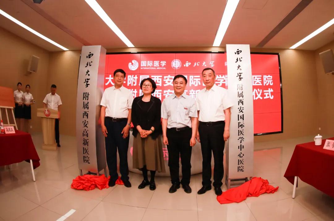 最后,在嘉賓們共同見證下,西北大學(xué)附屬西安國際醫(yī)學(xué)中心醫(yī)院、西北大學(xué)附屬西安高新醫(yī)院正式揭牌,會場響起熱烈掌聲。