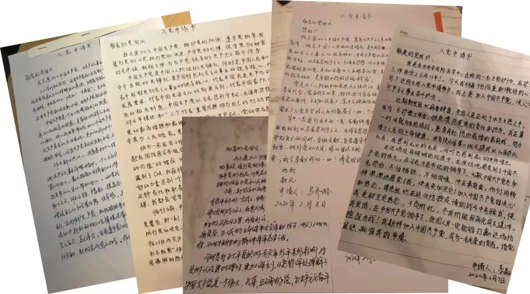 在武漢第八醫(yī)院有46名同志遞交了入黨申請書,在武漢協(xié)和醫(yī)院西院有5名同志遞交了入黨申請書。