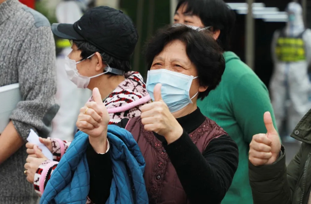 有人笑了,有人哭了,有人相擁,有人惜別,所有壓抑的情緒,在這一刻釋放,所有凝結(jié)的淚水,流淌在勝利的這一天!