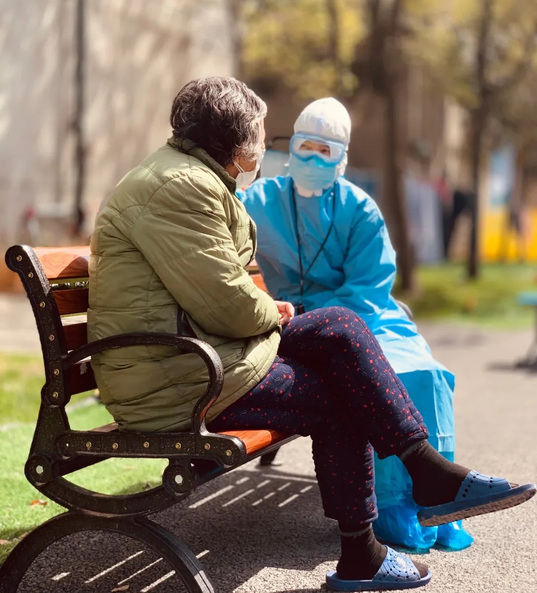 8艙有一位80多歲的老奶奶,中午出來(lái)遛彎時(shí)看到了醫(yī)療隊(duì)護(hù)士萬(wàn)珍妮,主動(dòng)過(guò)來(lái)攀談?!澳闶顷兾鱽?lái)的?我看你衣服上寫(xiě)著西安幾個(gè)字了?!薄笆前。棠?,我們是西安國(guó)際醫(yī)學(xué)中心醫(yī)院來(lái)武漢支援的?!比f(wàn)珍妮通過(guò)和奶奶聊天得知,奶奶的父親以前在寶雞工作過(guò)很長(zhǎng)時(shí)間。“我也算半個(gè)陜西人了。沒(méi)想到在這里還能見(jiàn)到“老鄉(xiāng)”!感謝你們!”奶奶感覺(jué)很親切,和萬(wàn)珍妮話起了“家?!?。