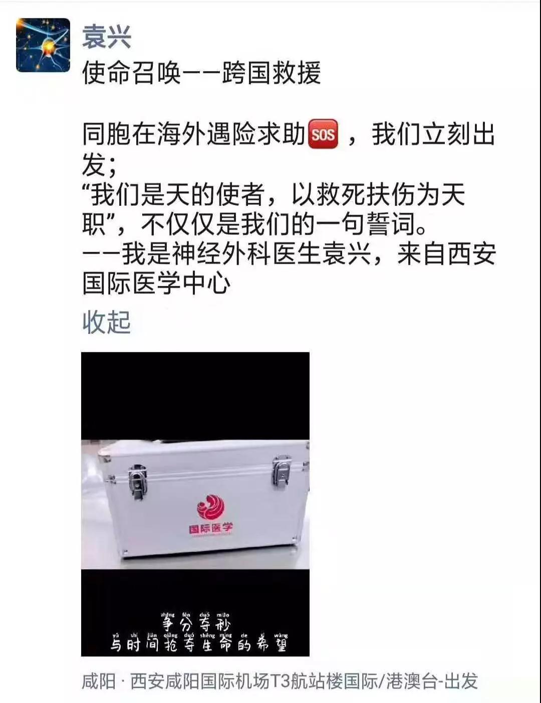 “這是中國(guó)醫(yī)生義不容辭的責(zé)任!”西安國(guó)際醫(yī)學(xué)中心醫(yī)院腦科醫(yī)院神經(jīng)外科主任賀世明介紹,12月2日,剛下手術(shù)的賀世明主任接到了求助電話,立即匯報(bào)上級(jí)領(lǐng)導(dǎo),尹強(qiáng)院長(zhǎng)當(dāng)機(jī)立斷,派出袁興醫(yī)生星夜兼程,帶著急救藥品設(shè)備奔赴泰國(guó)。