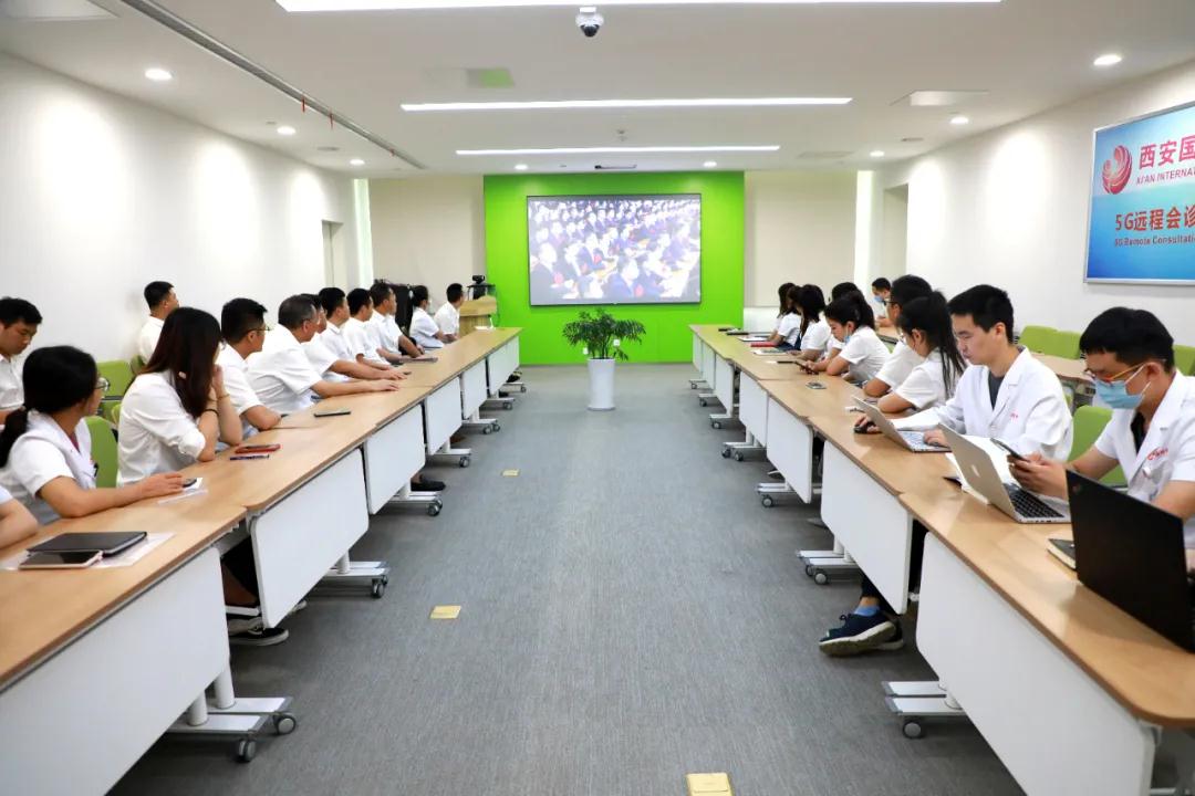 9月8日上午,西安國際醫(yī)學(xué)中心醫(yī)院6樓會議室,尹強(qiáng)院長、王志峰總經(jīng)理等與醫(yī)護(hù)人員代表,機(jī)關(guān)黨員干部代表收看全國抗擊新冠肺炎疫情表彰大會實況。