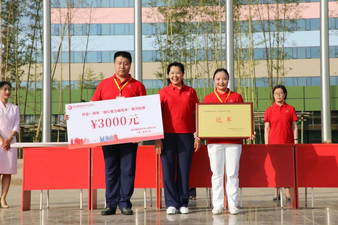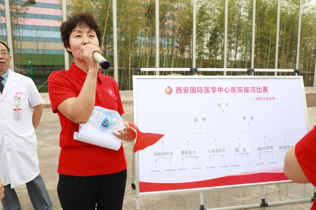 在院慶一周年之際,西安國際醫(yī)學中心醫(yī)院舉行“凝心聚力展風采”拔河比賽,來自各機關(guān)部門、??漆t(yī)院、科室共有11支隊伍275名隊員參加。王志峰總經(jīng)理親臨現(xiàn)場觀摩活動并為參賽隊員加油助威。