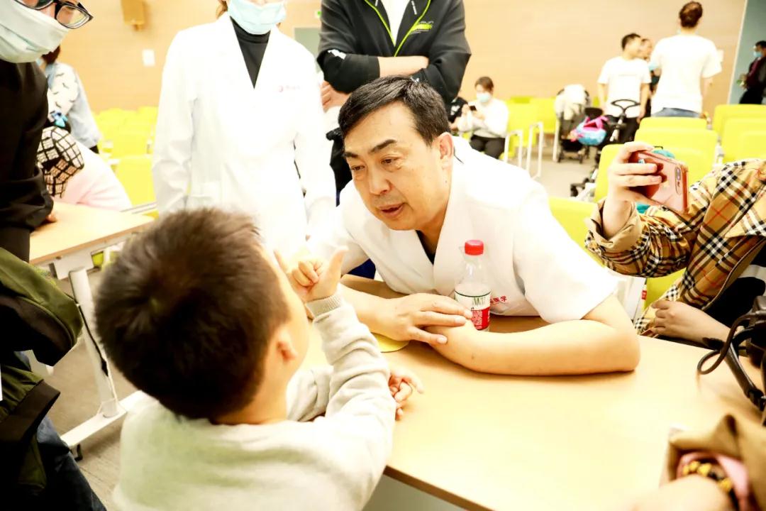 科普講座結(jié)束后,郭樹忠教授和武瑾醫(yī)生分別為小耳患者們進行一對一的面診。小耳患者及家屬有序面診,活動現(xiàn)場井然有序。小耳癥孩子的爸爸媽媽們從帶著很多疑問而來,剛開始眉頭緊皺,聽了兩位專家的介紹,如釋重負,了然于胸。