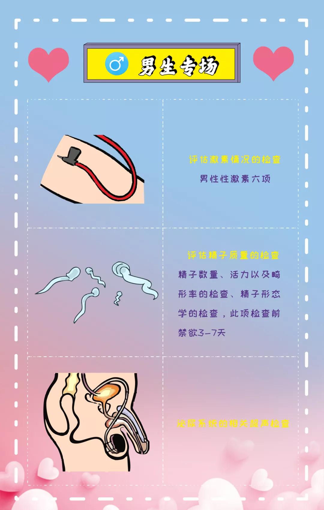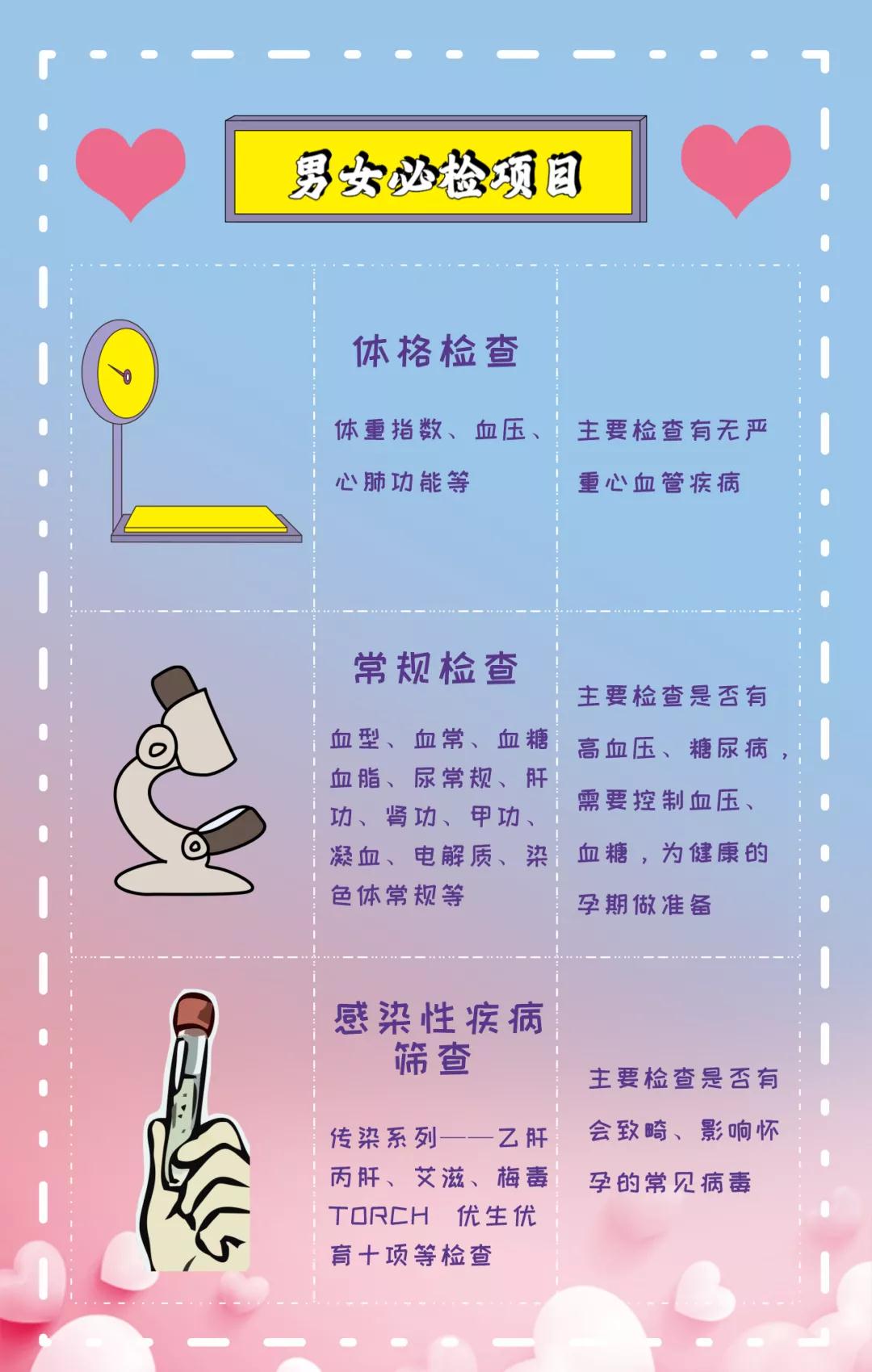 這些主要檢查生殖系統(tǒng)及器官是否有病變,“種子是否健康,土地是否肥沃”,“寶寶未來(lái)的家”是否“宜居”。如果發(fā)現(xiàn)問(wèn)題就有足夠的時(shí)間進(jìn)行治療,以免一些疾病影響到卵子、精子的質(zhì)量以及后期備孕成功后對(duì)胚胎發(fā)育的影響甚至導(dǎo)致流產(chǎn)。