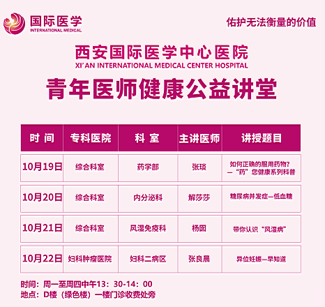 西安國際醫(yī)學中心醫(yī)院—青年醫(yī)師健康公益講堂預告
