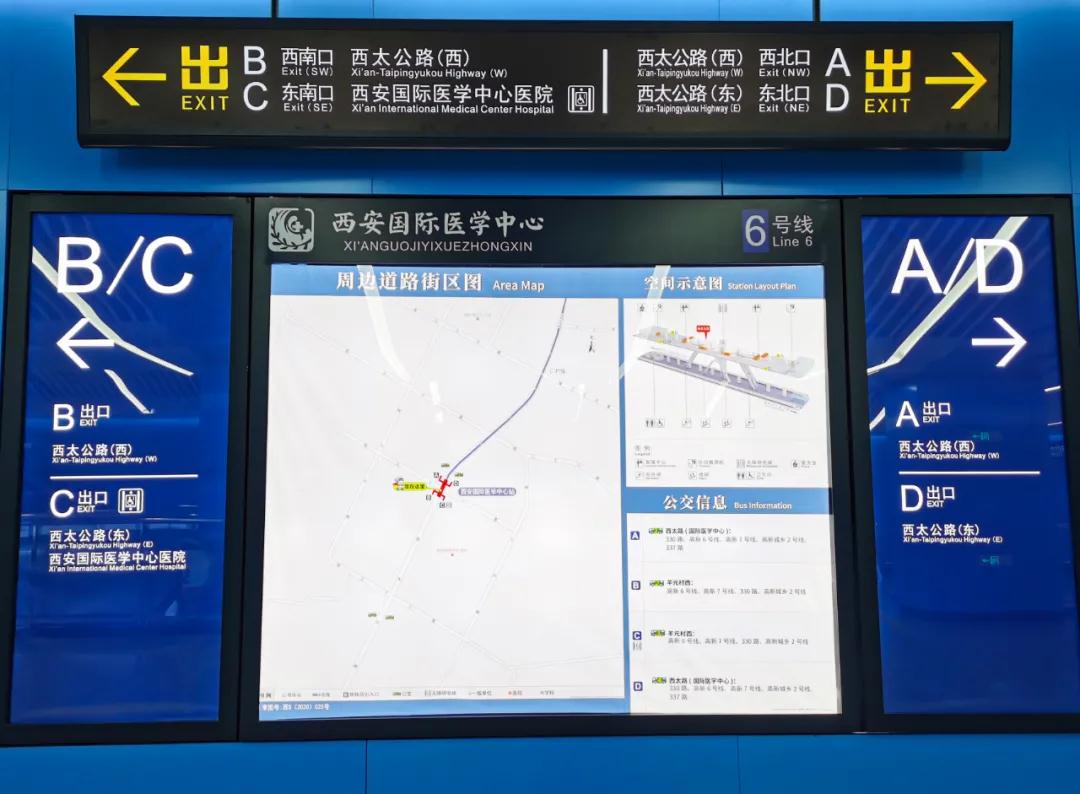 正式開通后,6號(hào)線西安國際醫(yī)學(xué)中心醫(yī)院站將開放4個(gè)地面出入口。主要分布在緯三十一和西太路口交匯處。地面C出口離西安國際醫(yī)學(xué)中心醫(yī)院2號(hào)門最近,僅20米就到醫(yī)院急診大樓前預(yù)檢處;地下通道C出口,通過閘機(jī)即到醫(yī)院A樓負(fù)二層。