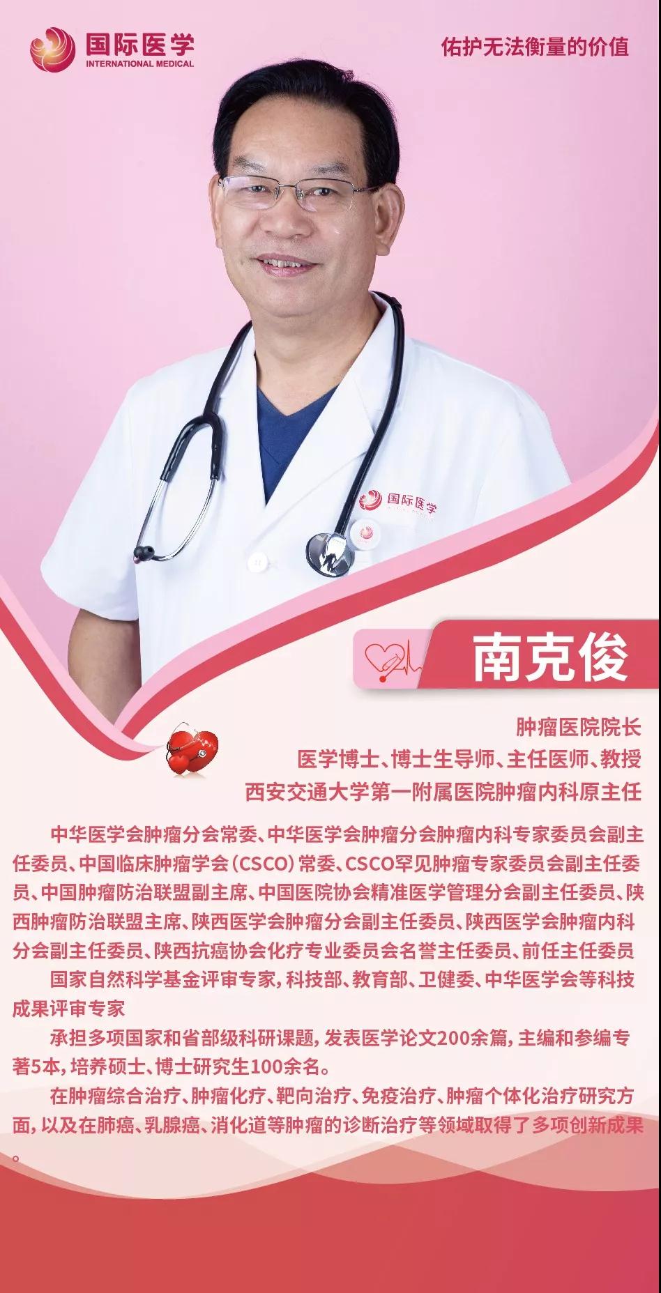 南克俊,腫瘤醫(yī)院院長,醫(yī)學博士、博士生導師、主任醫(yī)師、二級教授,西安交通大學第一附屬醫(yī)院腫瘤內(nèi)科原主任,中華醫(yī)學會腫瘤分會常委,中華醫(yī)學會腫瘤分會腫瘤內(nèi)科專家委員會副主任委員,中國臨床腫瘤學會(CSCO)常委,CSCO罕見腫瘤專家委員會副主任委員,中國腫瘤防治聯(lián)盟副主席,中國醫(yī)院協(xié)會精準醫(yī)學管理分會副主任委員,陜西腫瘤防治聯(lián)盟主席,陜西醫(yī)學會腫瘤分會副主任委員;承擔多項國家和省部級科研課題,發(fā)表醫(yī)學論文200余篇,主編和參編專著5本,培養(yǎng)碩士、博士研究生100余名;在腫瘤綜合治療、腫瘤化療、靶向治療、免疫治療、腫瘤個體化治療研究方面,以及在肺癌、乳腺癌、消化道等腫瘤的診斷治療等領域取得了多項創(chuàng)新成果。