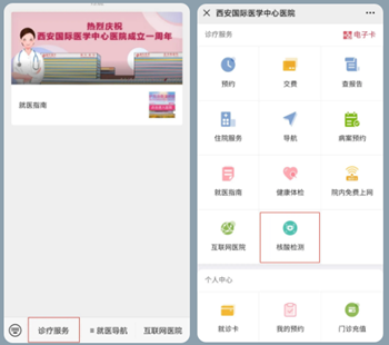 為方便患者進行核酸檢查,我院開通核酸檢測網(wǎng)上預約,并免掛號費用,患者可通過西安國際醫(yī)學中心醫(yī)院服務號進行預約和自助繳費。