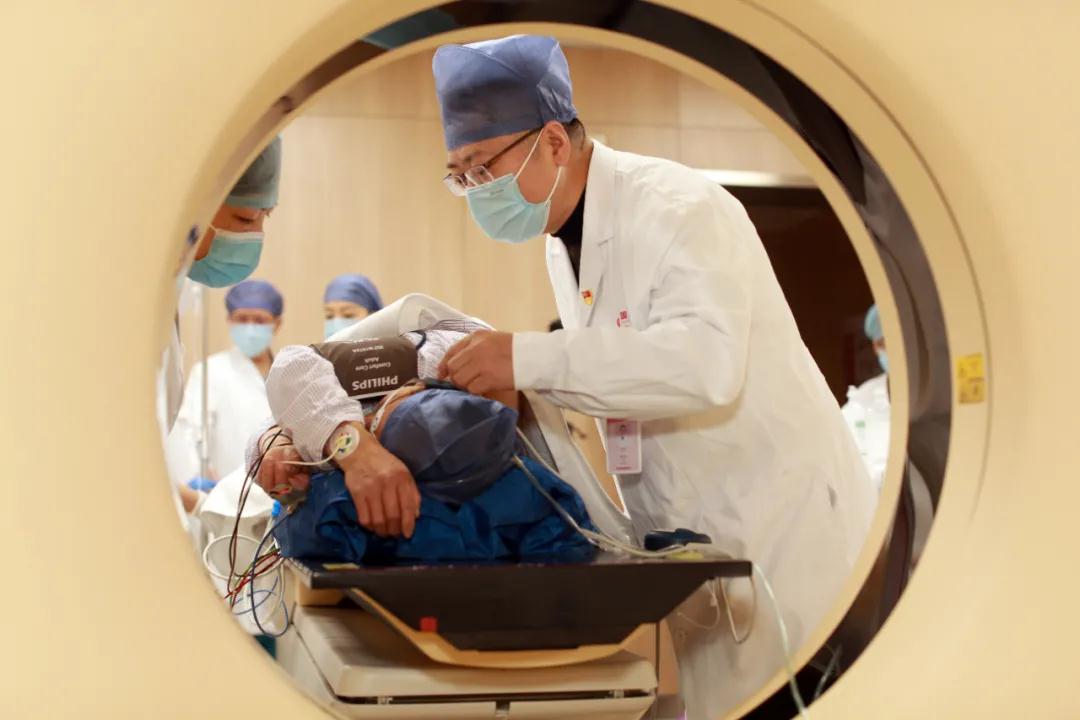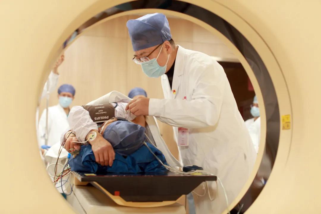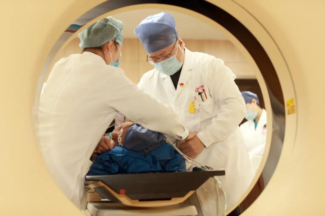 經(jīng)過放射治療中心陸軍主任的細(xì)致準(zhǔn)備與精準(zhǔn)定位,屈女士的射頻治療開始了?;颊卟扇∽髠?cè)臥位,麻醉醫(yī)生立即進(jìn)行靜脈全麻。在CT引導(dǎo)下,醫(yī)生手中的“消融針”,按照既定路線“穿引”,快速、準(zhǔn)確地插入右肺病灶部位,啟動射頻機(jī)器進(jìn)行了精準(zhǔn)的消融,右肺局部癌細(xì)胞一下子就被超高溫成功滅活了!經(jīng)CT掃查,無血?dú)庑?;患者生命體征平穩(wěn)。2個小時后,屈女士就下地活動了。