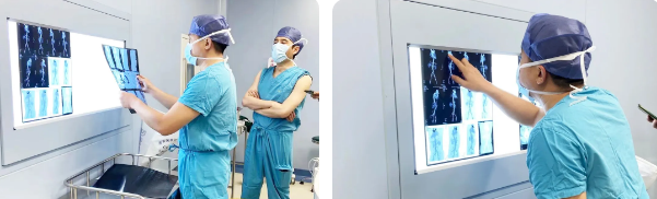 這位患者楊某,平日無(wú)任何不適癥狀,有高血壓病史7年。近日突感胸背部疼痛,加重4小時(shí),呈持續(xù)性撕裂樣痛。當(dāng)?shù)蒯t(yī)院的胸部CT提示:主動(dòng)脈增寬,考慮主動(dòng)脈夾層,建議緊急轉(zhuǎn)往上級(jí)醫(yī)院治療。家人連夜把患者送到西安國(guó)際醫(yī)學(xué)中心醫(yī)院進(jìn)一步治療。經(jīng)急診核酸檢測(cè)后,楊某于12日凌晨3點(diǎn)走“主動(dòng)脈夾層綠色通道”,住進(jìn)心臟外科ICU。進(jìn)一步檢查發(fā)現(xiàn),該患者有:主動(dòng)脈夾層(DebakeyI型)、動(dòng)脈夾層撕裂到左側(cè)髂總動(dòng)脈,主動(dòng)脈瓣返流(中量)、雙側(cè)胸腔及心包腔積液。考慮到主動(dòng)脈隨時(shí)有破裂的風(fēng)險(xiǎn),他們當(dāng)機(jī)決定為楊某急診手術(shù)。手術(shù)于13日早上8點(diǎn)30分開(kāi)始,張金洲及其團(tuán)隊(duì)先行主動(dòng)脈根部重建,再用術(shù)中支架修復(fù)降主動(dòng)脈,然后用四分支血管替換破裂的升主動(dòng)脈及主動(dòng)脈弓,最后吻合主動(dòng)脈弓上分支血管。手術(shù)節(jié)奏流暢,團(tuán)隊(duì)配合默契,歷經(jīng)7個(gè)小時(shí)手術(shù)順利完成。