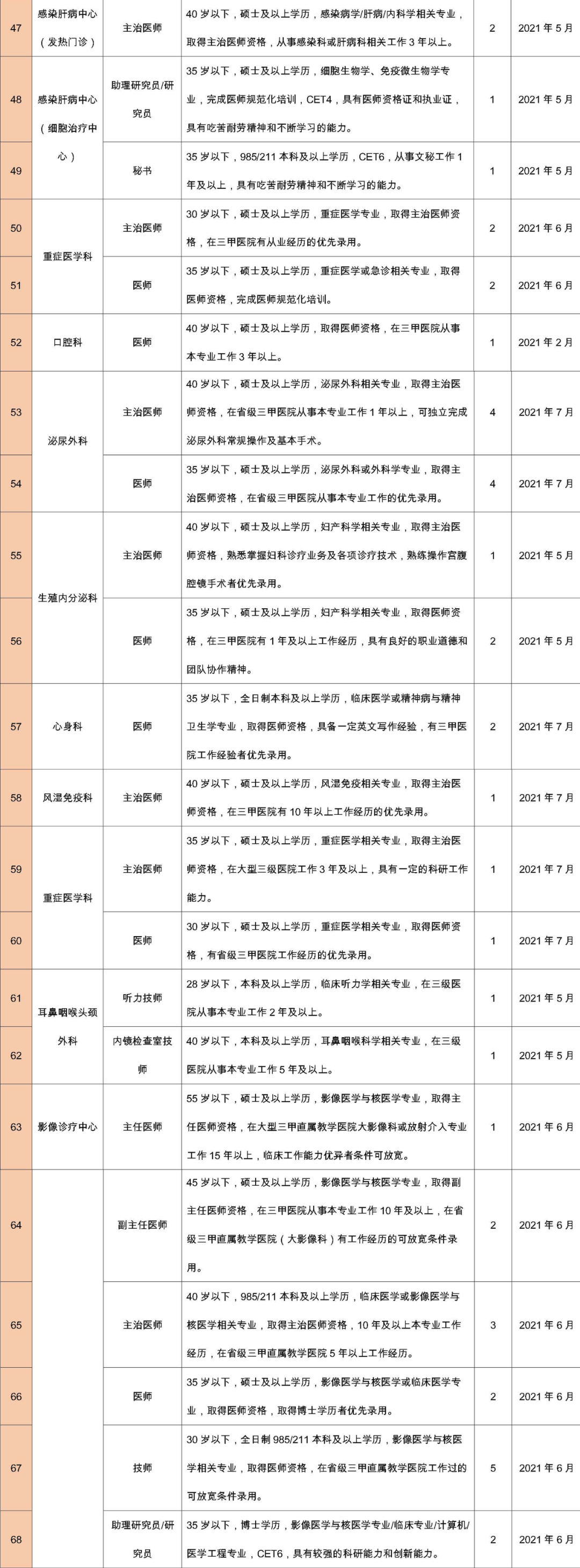擁護(hù)黨的路線、方針、政策;遵守國家法律、法規(guī);熱愛本職工作,責(zé)任心強(qiáng),有良好的職業(yè)道德,認(rèn)同國際醫(yī)學(xué)價(jià)值理念,愿意投身醫(yī)療事業(yè);所學(xué)專業(yè)必須與應(yīng)聘崗位要求相符或必須具有相關(guān)從業(yè)經(jīng)歷。