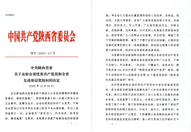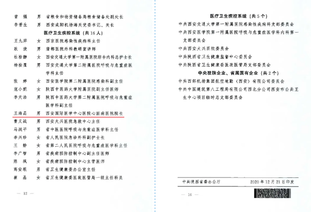 近期,中共陜西省委印發(fā)《關(guān)于表彰全省優(yōu)秀共產(chǎn)黨員和全省先進(jìn)基層黨組織的決定》,對(duì)在抗擊新冠肺炎疫情中涌現(xiàn)出來的134名優(yōu)秀共產(chǎn)黨員和45個(gè)先進(jìn)基層黨組織進(jìn)行了表彰。西安國際醫(yī)學(xué)中心醫(yī)院心臟病醫(yī)院院長王海昌被評(píng)為“陜西省優(yōu)秀共產(chǎn)黨員”。