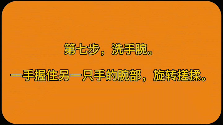 3、認真揉搓雙手至少 15s,注意清洗雙手所有皮膚,包括指背、指尖和指縫,具體揉搓步驟(即七步洗手法步驟):