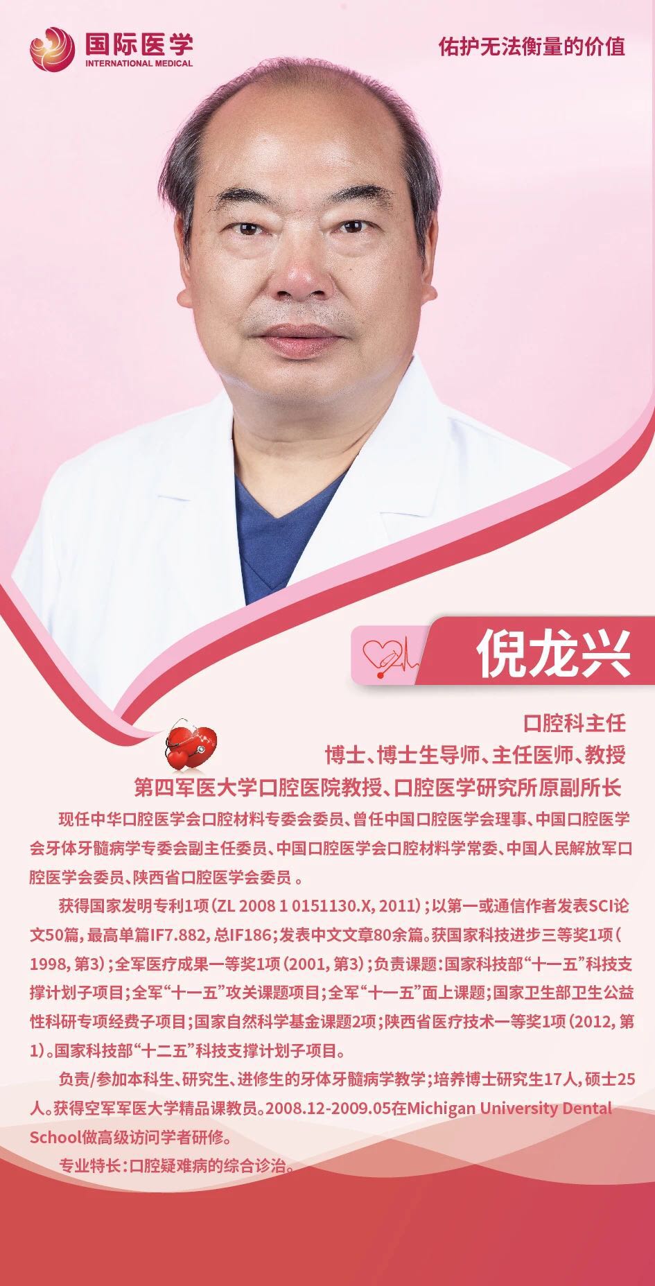 在動(dòng)物世界中,牙齒是進(jìn)食、戰(zhàn)斗、彰顯實(shí)力的工具,失去牙齒就意味著失去生命。人類進(jìn)化到今天,牙齒除了咀嚼、輔助發(fā)音、面型美觀功能外,更是全身健康的晴雨表。心血管疾病、糖尿病、消化道疾病、阿爾茨海默病都與牙齒健康息息相關(guān)。據(jù)世界衛(wèi)生組織(WHO)報(bào)告:齲病及其繼發(fā)病是繼癌癥、心血管疾病之后危害人類健康的第三大非傳染性疾病。西安國際醫(yī)學(xué)中心醫(yī)院口腔科主任倪龍興從醫(yī)三十多年,孜孜不倦、兢兢業(yè)業(yè),用心守護(hù)著人們的牙齒健康。
