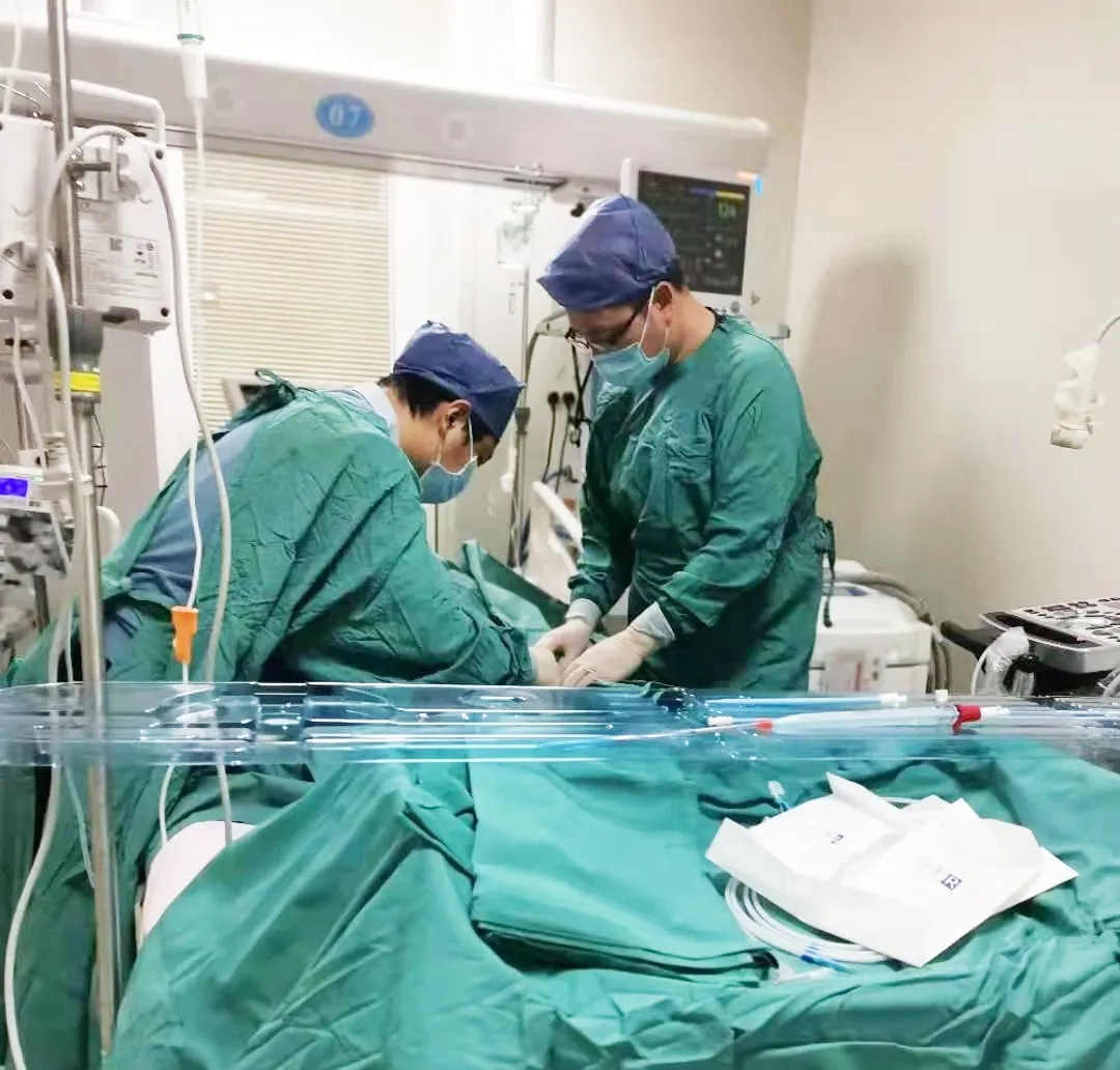 氣管插管后患者血氧飽和度仍然只有74%左右。呼吸內(nèi)科重癥監(jiān)護(hù)室陳麗展主任根據(jù)患者病情,建議盡早進(jìn)行VV-ECMO治療——患者肺部感染嚴(yán)重,需要人工體外搭建一個(gè)“肺”暫時(shí)代替“病肺”工作,爭(zhēng)取挽救“病肺”時(shí)間同時(shí)維持患者正常呼吸,保證其他臟器正常運(yùn)行。征得家屬同意后,呼吸內(nèi)科聯(lián)合心外科緊急會(huì)診,評(píng)估患者是否適合進(jìn)行VV-ECMO治療,結(jié)果建議VV-ECMO治療。
