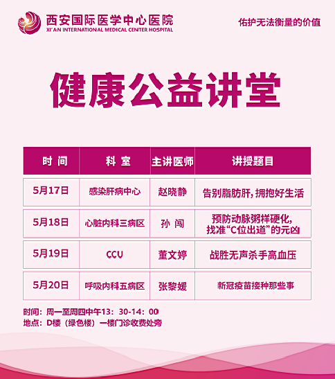 西安國際醫(yī)學(xué)中心醫(yī)院—青年醫(yī)師健康公益講堂預(yù)告