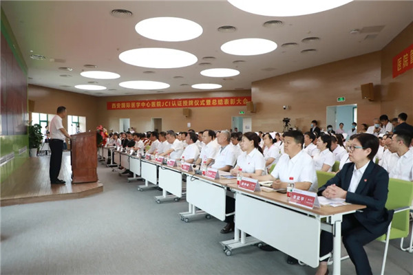 5月27日,西安國際醫(yī)學(xué)中心醫(yī)院舉行JCI認(rèn)證授牌儀式暨總結(jié)表彰大會(huì)。聯(lián)合委員會(huì)國際部總裁兼首席執(zhí)行官PaulaWilson ,聯(lián)合委員會(huì)國際部中國區(qū)主任、JCI評審(北京)有限公司副總經(jīng)理任暉,聯(lián)合委員會(huì)國際部JCI認(rèn)證組組長孔雅雀,華潤JCI研究院執(zhí)行院長酈忠,西安國際醫(yī)學(xué)投資股份有限公司總裁劉瑞軒、副董事長王愛萍、副總裁孫文國、副總裁王杲、孫義寬,西安國際醫(yī)學(xué)中心醫(yī)院院長尹強(qiáng)、總經(jīng)理王志峰等領(lǐng)導(dǎo),各專科醫(yī)院院長、主任、護(hù)士長以及職工代表參加。