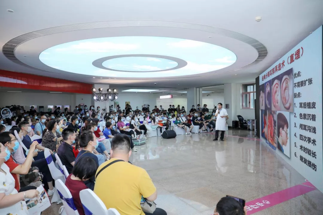 活動開始,大屏幕首先呈現(xiàn)出來自全國各地“小耳寶寶”的端午祝福,孩子們的天真笑臉,美好愿望令人動容。隨后西安國際醫(yī)學(xué)中心醫(yī)院整形醫(yī)院院長——郭樹忠教授,為數(shù)百個“小耳”家庭,詳細講解了“小耳畸形”疾病的相關(guān)知識,客觀列舉了各種“耳再造”手術(shù)方法優(yōu)缺點,力求讓患有“小耳”疾病的孩子及其家庭,對“疾病”及治療方式有更加全面系統(tǒng)的了解,也為到達最佳手術(shù)年齡,即將手術(shù)的“小耳”孩子們,在家庭護理環(huán)節(jié)、治療選擇環(huán)節(jié)等,提供清晰準(zhǔn)確的預(yù)判建議。