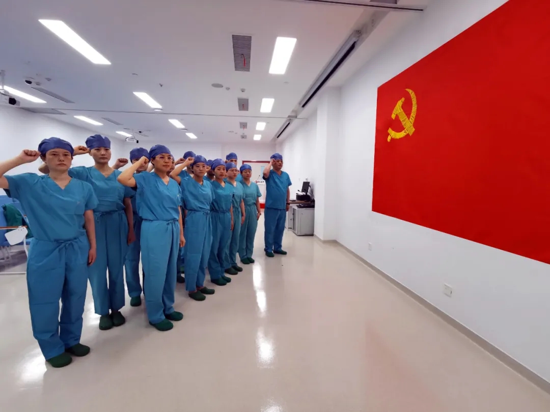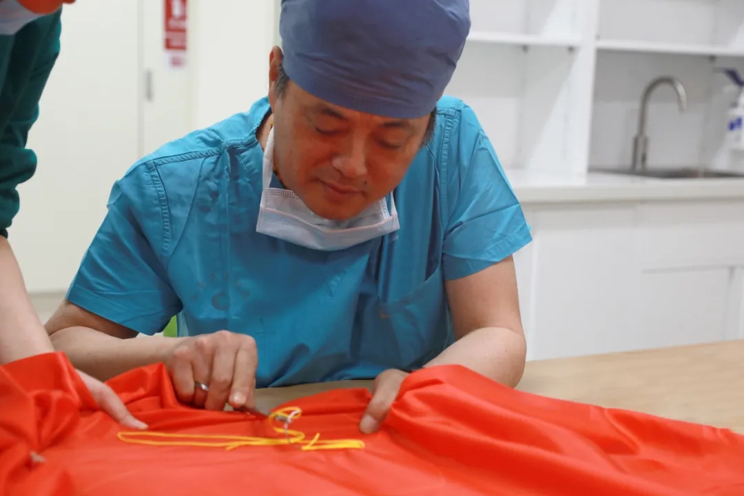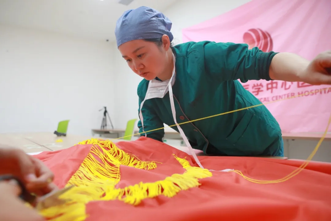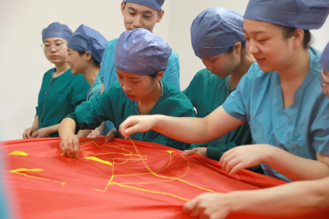 有著15年黨齡的主管護師譚婷婷覺得這項活動很有紀念意義?!啊细锩龅搅诵聠栴},用手術(shù)針繡旗有難度,既要保持旗面平整,又要保證針腳密集,這樣繡出來的圖案立體,色彩飽滿。”通過活動,她充分感受到向上奮進的正能量,將永葆黨員的先進性。