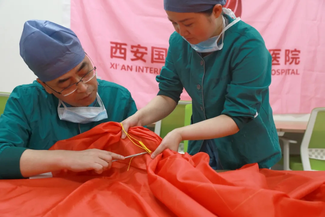 以手術(shù)針為工具,用接力的形式凝心聚力,把對黨的忠誠與熱愛融進針線中。西安國際醫(yī)學(xué)中心醫(yī)院黨委設(shè)有11個黨支部,有607名黨員,其中專家黨員200余名。繡黨旗活動是該院開展黨史學(xué)習(xí)教育的一項重要內(nèi)容。共憶入黨初心、從醫(yī)使命,回顧黨的光輝歷程,通過此項活動,黨員們的榮譽感、使命感和責任感增強了,更加堅定了聽黨話、跟黨走的信念。