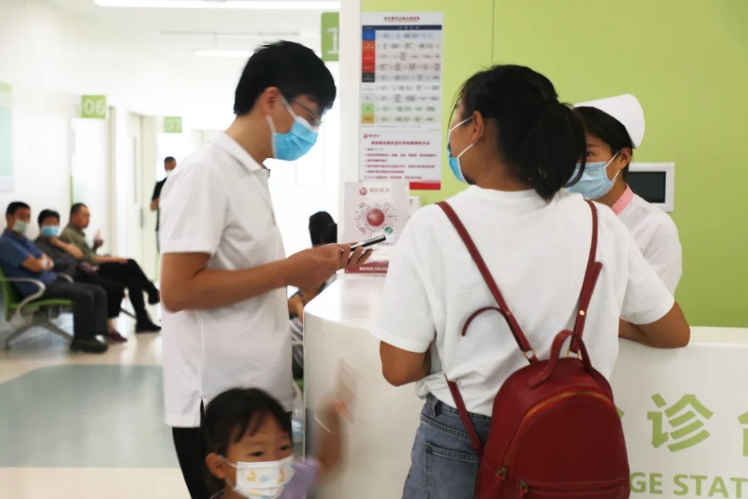 在醫(yī)院各個(gè)診區(qū)的咨詢處、分診臺前,醫(yī)護(hù)人員也為患者們講解活動流程,耐心地為年齡較大不會使用手機(jī)的患者,預(yù)約掛號。