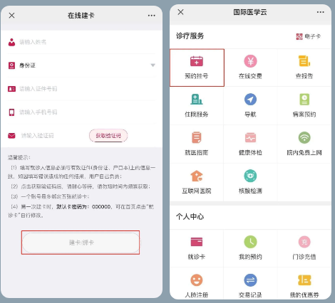 3、輸入個人信息完成就診卡綁定。綁卡后,點(diǎn)擊【預(yù)約掛號】