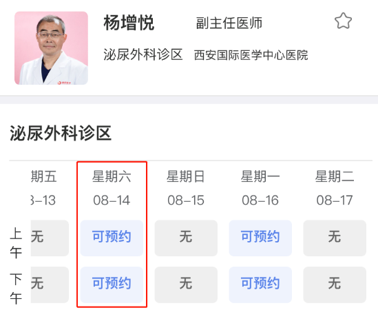 進(jìn)入預(yù)約掛號后,點(diǎn)擊選擇其他門診—泌尿外科診區(qū)—楊增悅—選擇預(yù)約時間—填寫流行病學(xué)史調(diào)查表,完成預(yù)約。