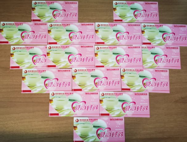 在西安國際醫(yī)學中心醫(yī)院醫(yī)療大樓快樂美食廣場,醫(yī)院專門開設了:為貧困患者提供了免費“愛心餐券”。