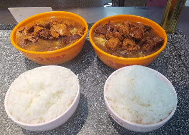 “米飯?zhí)撞屠锩婕t燒排骨、西紅柿炒蛋、白灼青菜都有,還可以選炸醬面、小菜、湯,營養(yǎng)均衡又健康?!彼Q起了大拇指。