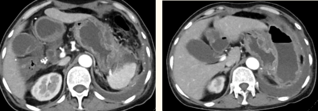 一籌莫展的她終于在病友的介紹下,來到西安國際醫(yī)學中心醫(yī)院找到蔡磊主任。經過詢問病史,查體等,蔡磊主任建議口服索坦治療。3個月后,李阿姨復查CT提示胃間質瘤較前明顯縮小,大小約10.4cm?6cm。但仍存在消化道出血,營養(yǎng)狀況差,全身無力,骨髓抑制。蔡磊主任隨即將患者收治入院。