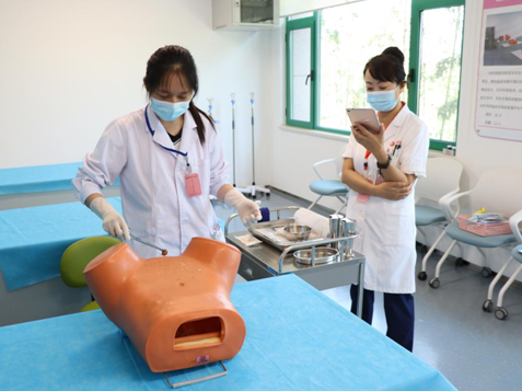 考核現(xiàn)場(chǎng)采用OSCE考站系統(tǒng),考生進(jìn)入考場(chǎng)后確定考核項(xiàng)目,在模擬人上進(jìn)行具體操作,考官根據(jù)學(xué)員操作與現(xiàn)場(chǎng)作答情況進(jìn)行評(píng)分,整個(gè)考場(chǎng)井然有序。此次考核不僅檢驗(yàn)了輪轉(zhuǎn)實(shí)習(xí)學(xué)員的學(xué)習(xí)效果,也達(dá)到了以考促學(xué)、以考促教的效果,促進(jìn)臨床帶教水平和質(zhì)量不斷提升。