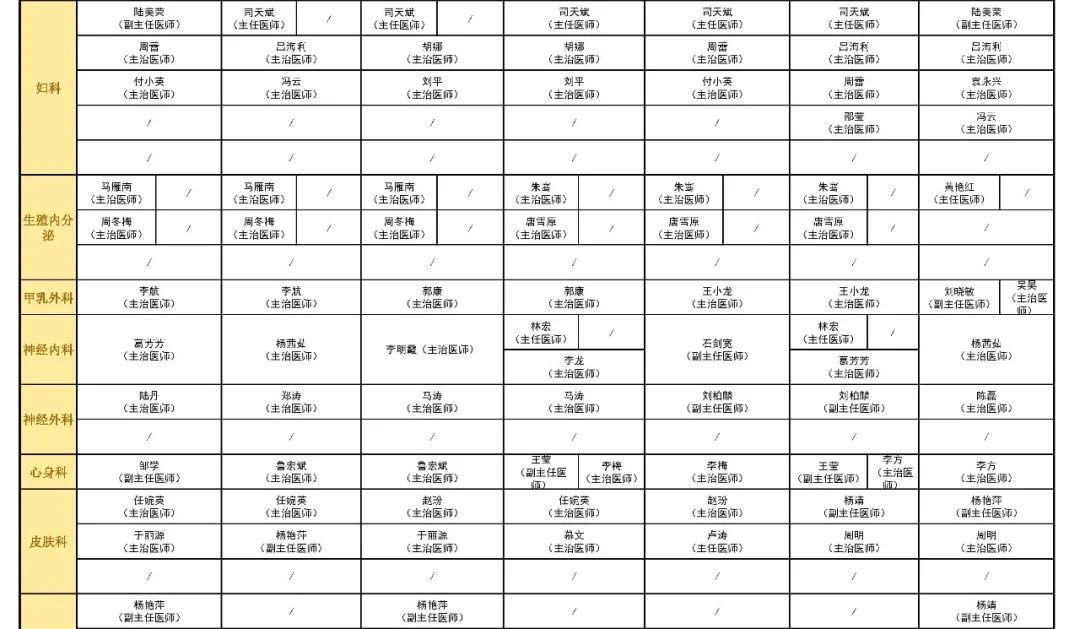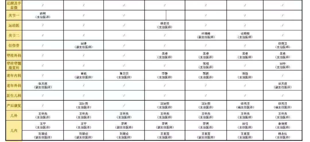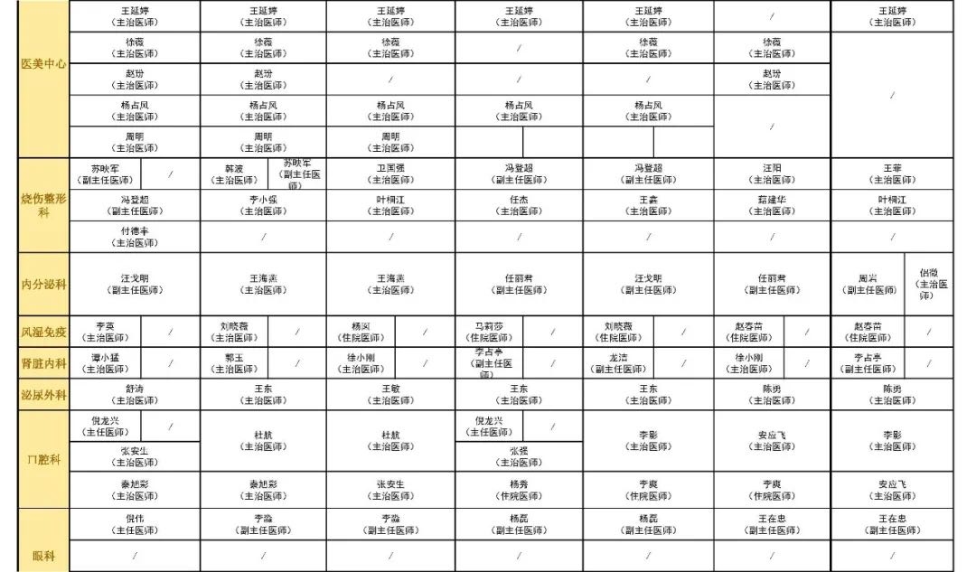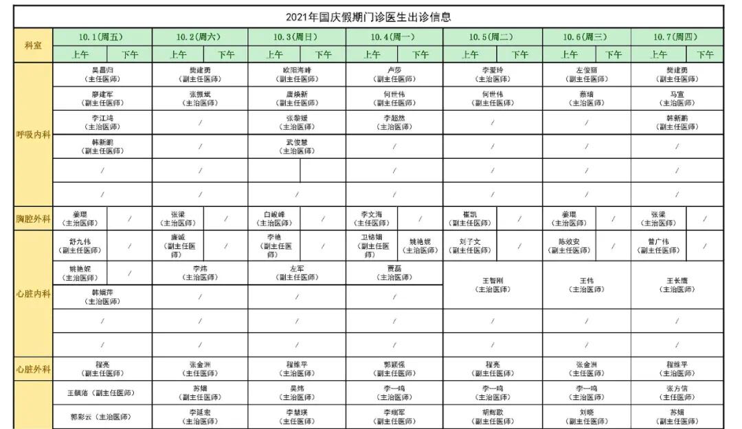 國慶假期門診安排表