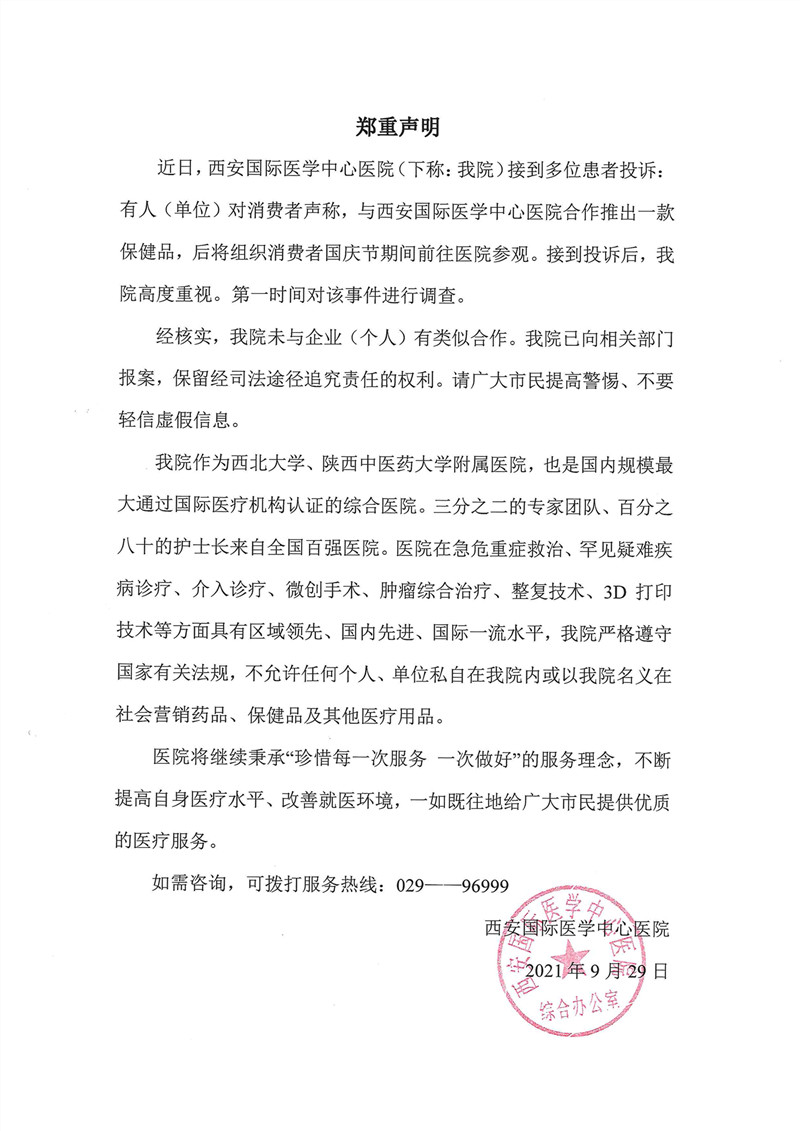 • 國(guó)內(nèi)首家高分通過JCI認(rèn)證的醫(yī)院 西安國(guó)際醫(yī)學(xué)中心醫(yī)院為國(guó)內(nèi)首家高分通過JCI認(rèn)證的醫(yī)院,該稱號(hào)由國(guó)際醫(yī)療機(jī)構(gòu)認(rèn)證聯(lián)合委員會(huì)頒布。