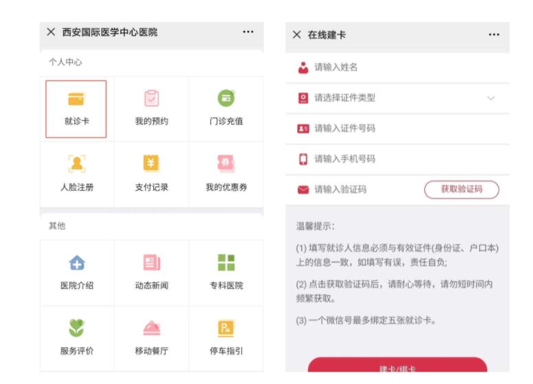 (2)沒有電子就診卡的人員,需輸入個人信息進行在線建卡,建卡后返回診療服務(wù)頁面點擊【核酸檢測】,進行核酸檢測預(yù)約并線上支付費用。