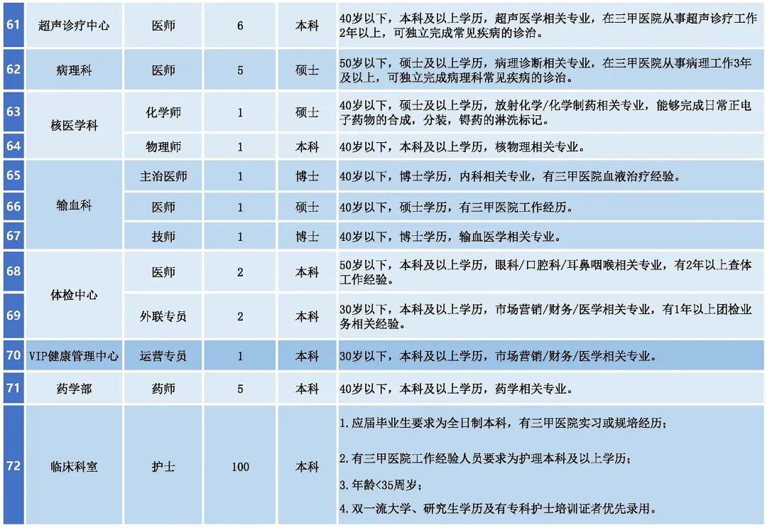 應(yīng)聘者要有相應(yīng)的執(zhí)業(yè)證書和資格證書;應(yīng)聘醫(yī)師崗位者要完成國家住院醫(yī)師規(guī)范化培訓(xùn)。