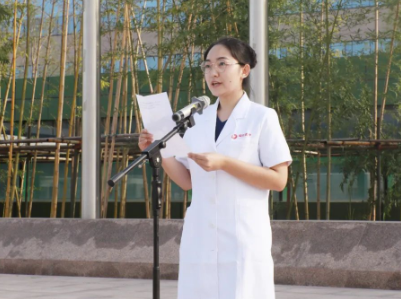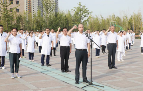 最后,付強(qiáng)副院長(zhǎng)帶領(lǐng)全體新員工舉起右手,莊嚴(yán)宣誓:“我們是天的使者,以救死扶傷為天職.......”,鏗鏘有力的誓言在萬人廣場(chǎng)久久回蕩。