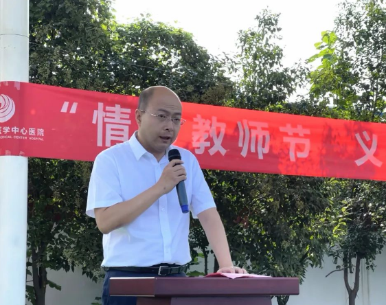 付強(qiáng)副院長向參與義診教師介紹了醫(yī)院專家團(tuán)隊(duì)、醫(yī)療服務(wù)等內(nèi)容,希望通過義診及醫(yī)療培訓(xùn)活動(dòng)切實(shí)改善教師群體健康問題,提高教師應(yīng)對(duì)校內(nèi)突發(fā)健康問題的能力。