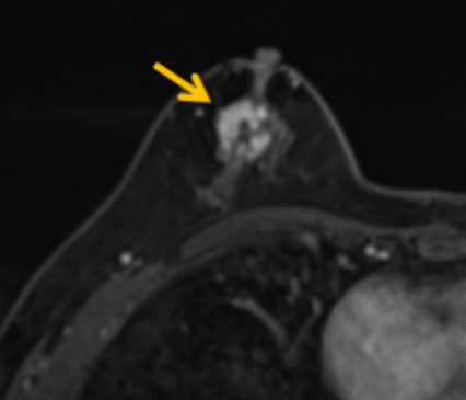 針對患者乳房小固定難度大這一問題,陳寶瑩通過巧妙體位和固定器的調(diào)整,順利固定好乳房。經(jīng)過磁共振多模態(tài)掃描,陳寶瑩找出病變活性成分相對集中區(qū)域,精準(zhǔn)確定穿刺路徑,置入引導(dǎo)針、旋切針,到位后多角度旋切取出足量組織,拔除旋切針后即時行磁共振掃描,精準(zhǔn)取得組織且術(shù)區(qū)出血很少,遂加壓包扎,整個過程非常順利,旋切活檢后患者回家休息。兩天后隨訪,李女士沒有任何不適,五天后皮膚上幾毫米的小切口已經(jīng)愈合。最終病理結(jié)果證實(shí)為乳腺導(dǎo)管原位癌,為早期乳腺癌,為患者后續(xù)針對性治療奠定了基礎(chǔ)。