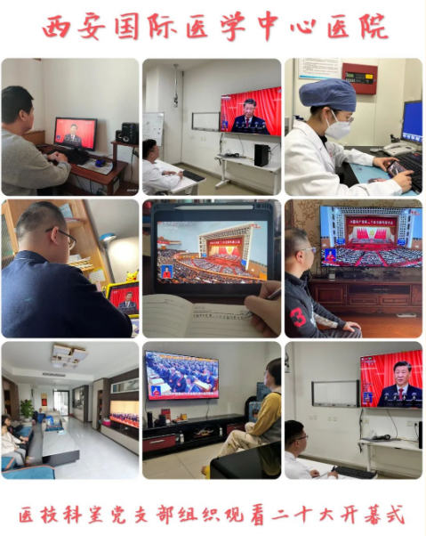 2022年10月16日,中國(guó)共產(chǎn)黨第二十次全國(guó)代表大會(huì)在人民大會(huì)堂隆重召開(kāi),習(xí)近平總書記向大會(huì)作了題為《高舉中國(guó)特色社會(huì)主義偉大旗幟 為全面建設(shè)社會(huì)主義現(xiàn)代化國(guó)家而團(tuán)結(jié)奮斗》的報(bào)告。西安國(guó)際醫(yī)學(xué)中心醫(yī)院黨委、各支部委員在院集中收看,其他黨員、群眾根據(jù)疫情防控要求,采取集中和分散相結(jié)合的方式收聽(tīng)收看了盛會(huì),反響熱烈。